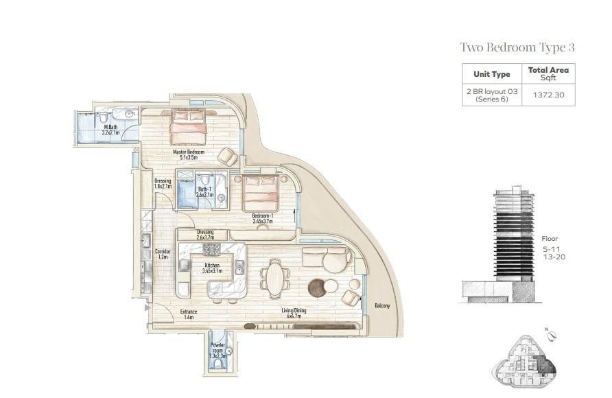 The project offers a selection of modern apartments, penthouses, and sky Villas designed with fluid architecture, spacious layouts, and premium finishes.