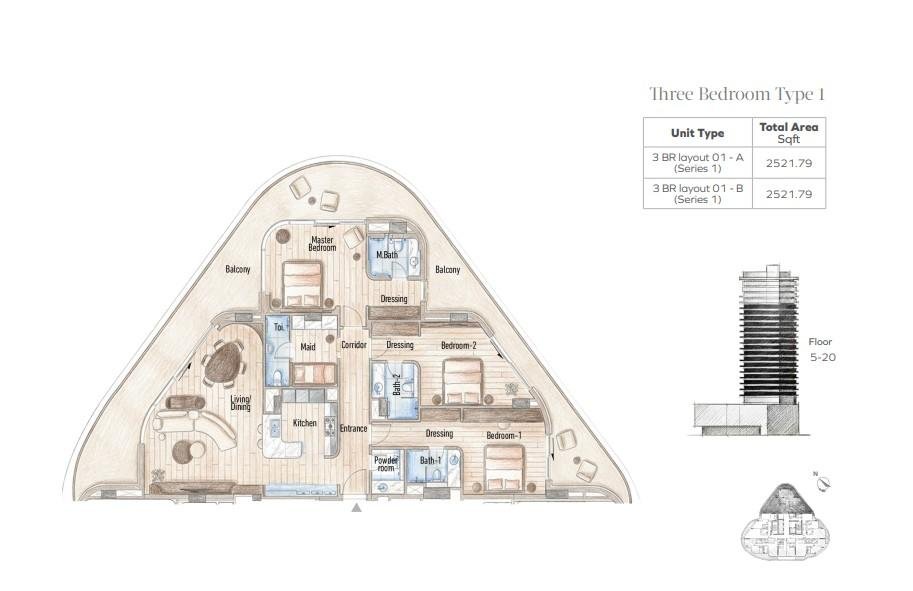 - 3 Bedroom Residences – 2,522 sq ft