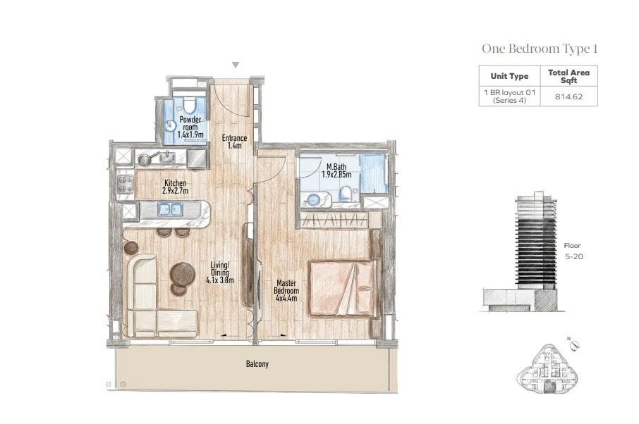- 1 Bedroom Residences – From 814 sq ft