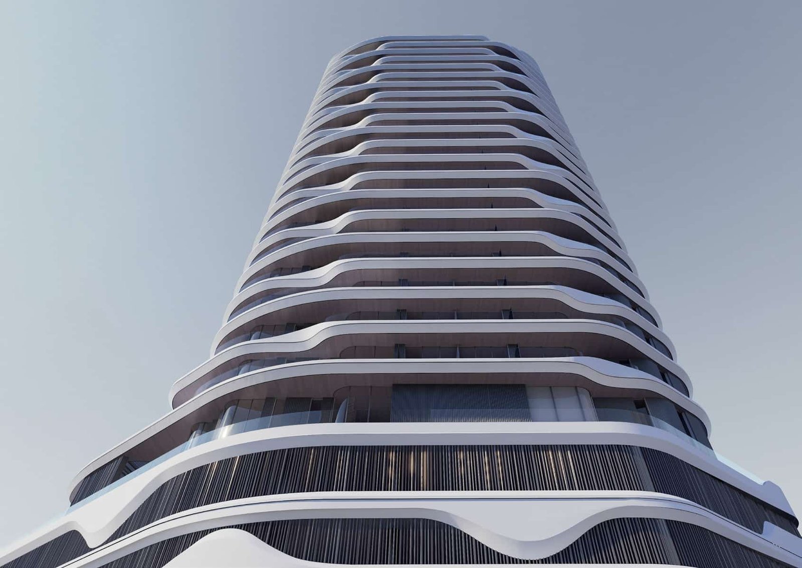 - Fluid architectural design with deep terraces, shaded outdoor rooms, and cooled balconies
