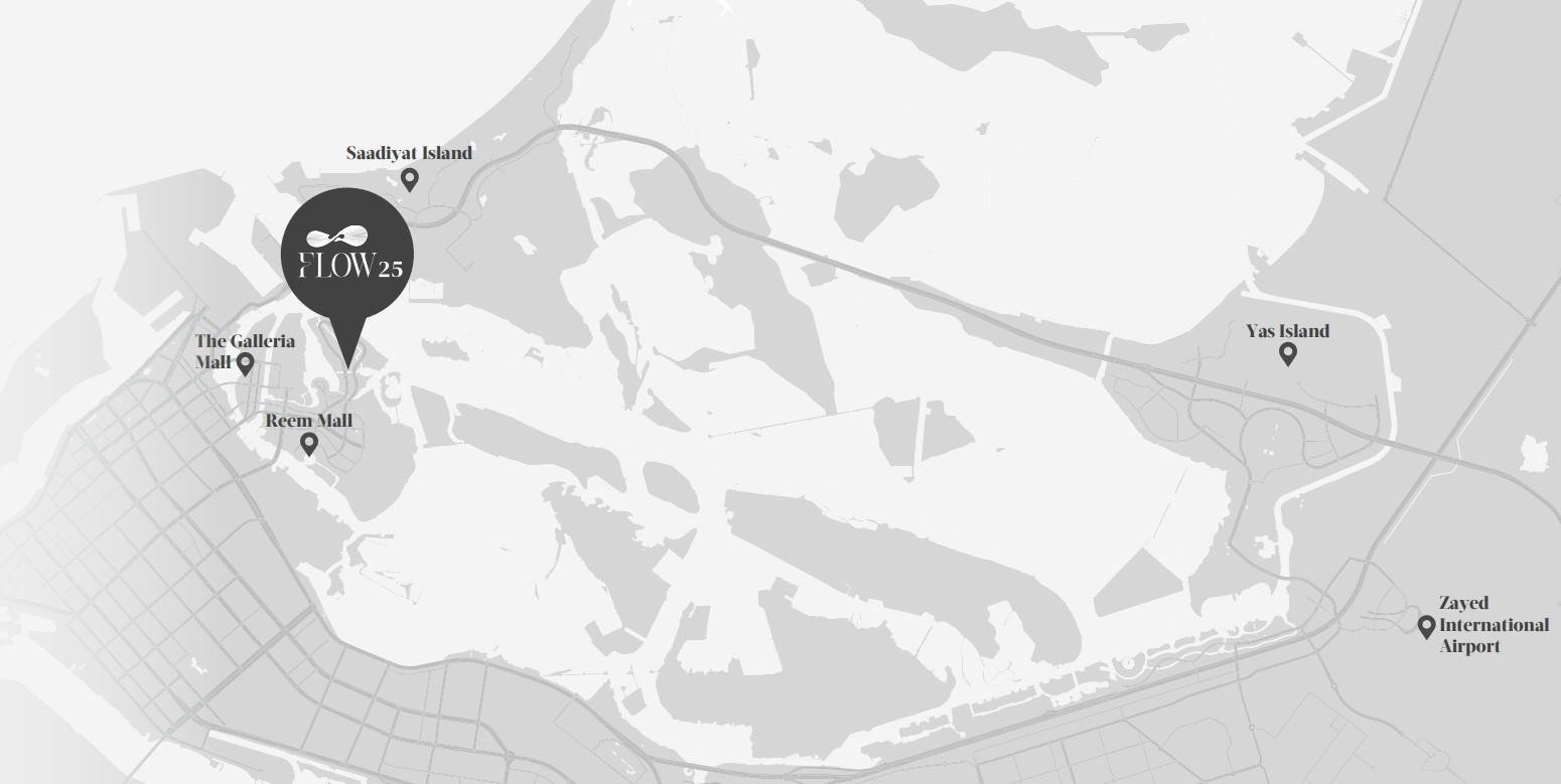 Flow25 is strategically located on Al Reem Island, one of Abu Dhabi’s most sought-after residential districts. The project offers easy access to Reem Mall, Al Maryah Island, Saadiyat Island, Yas Island, central Abu Dhabi, and Zayed International Airport.